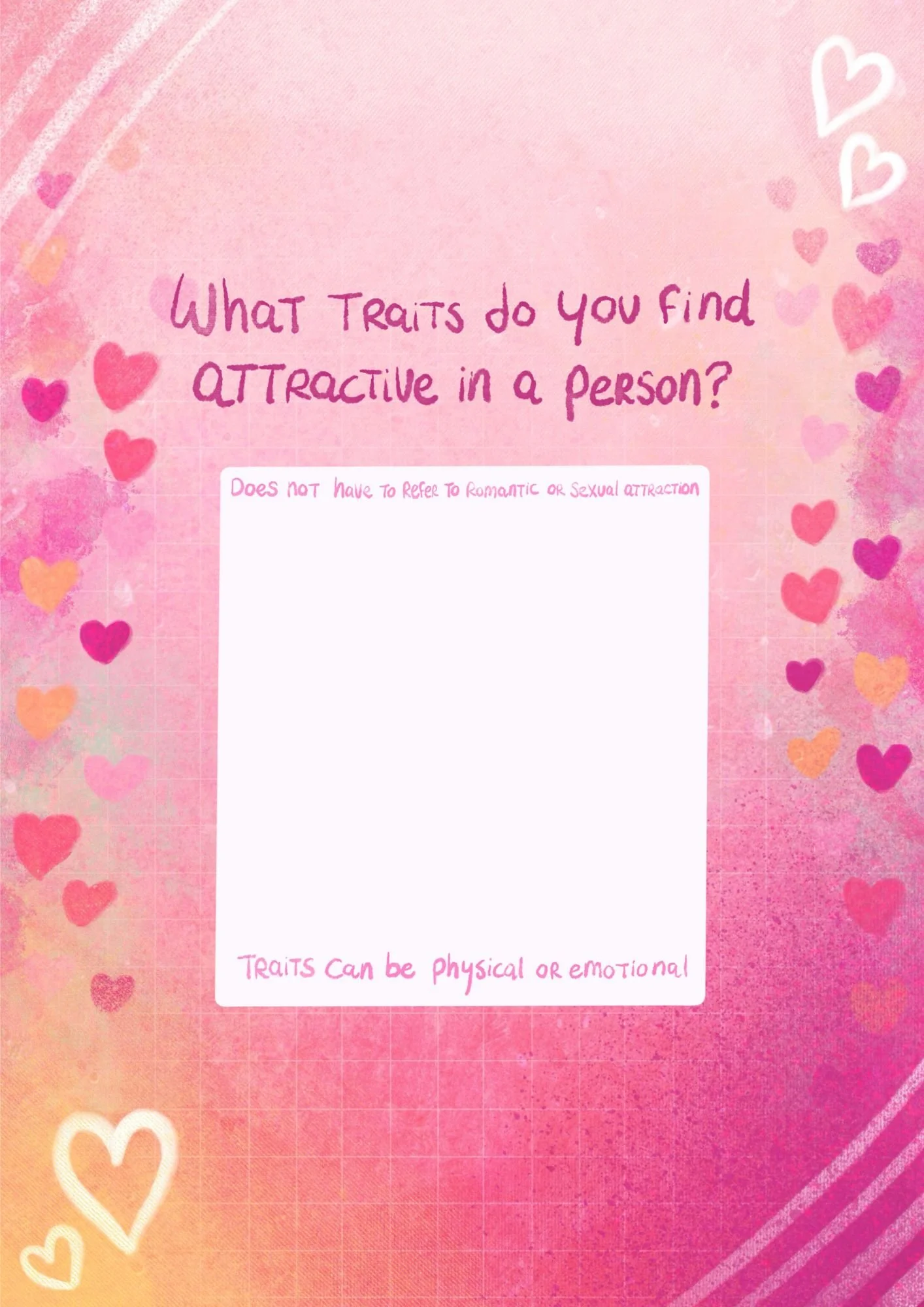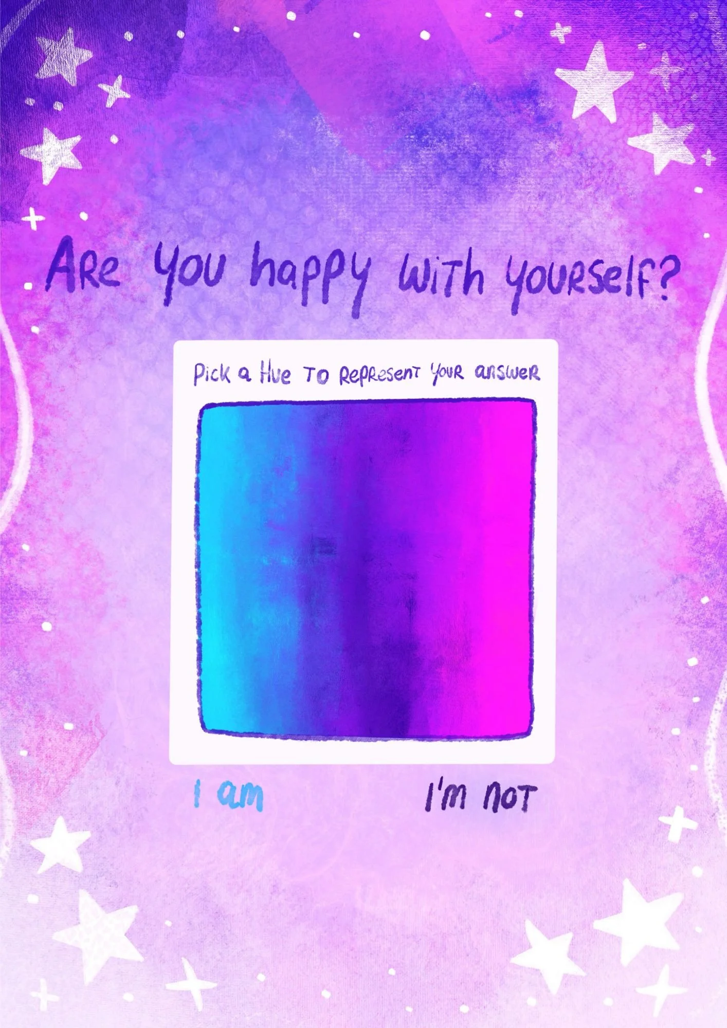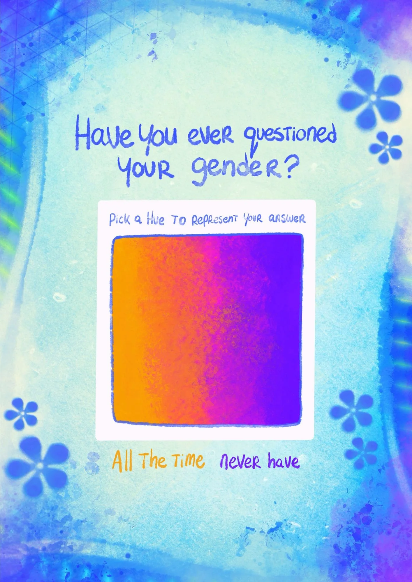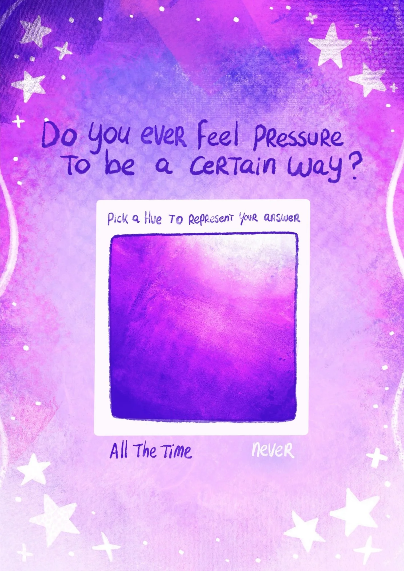 The back of the booklet contains a glossary, in which you can find terms related to these questions. You can reference the glossary while answering the questions, or you could completely ignore it and feel your way through it. The laminated sheets allow you to change your answers as you please, since as your identity develops so might your answers. This booklet was inspired by how society forces many people into boxes, and how it's challenging to break through societal pressure.Let this booklet be your helping hand in exploring your identity and aid you disregarding societal pressures. - Yara, Sem, Shalina, Elenora and Alis